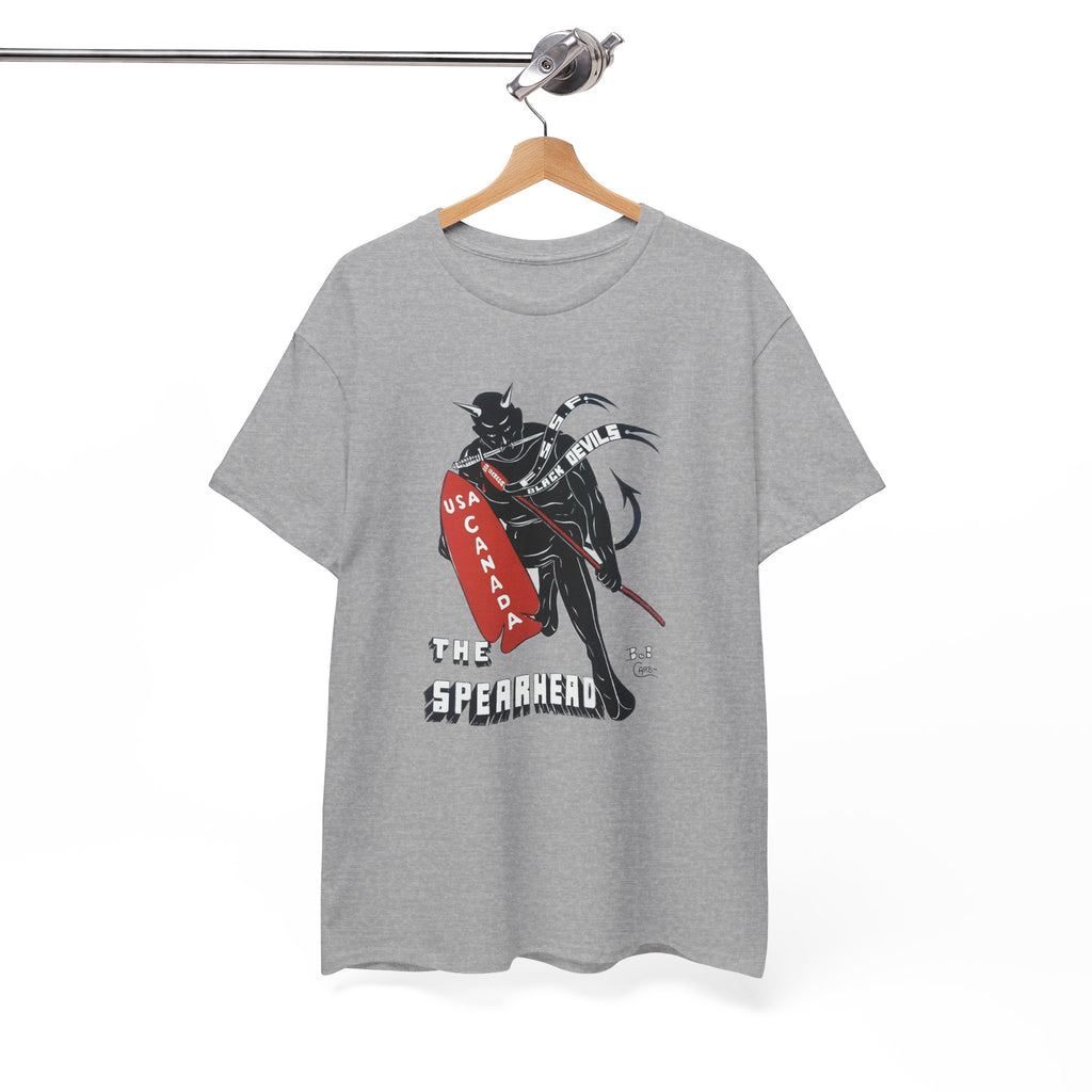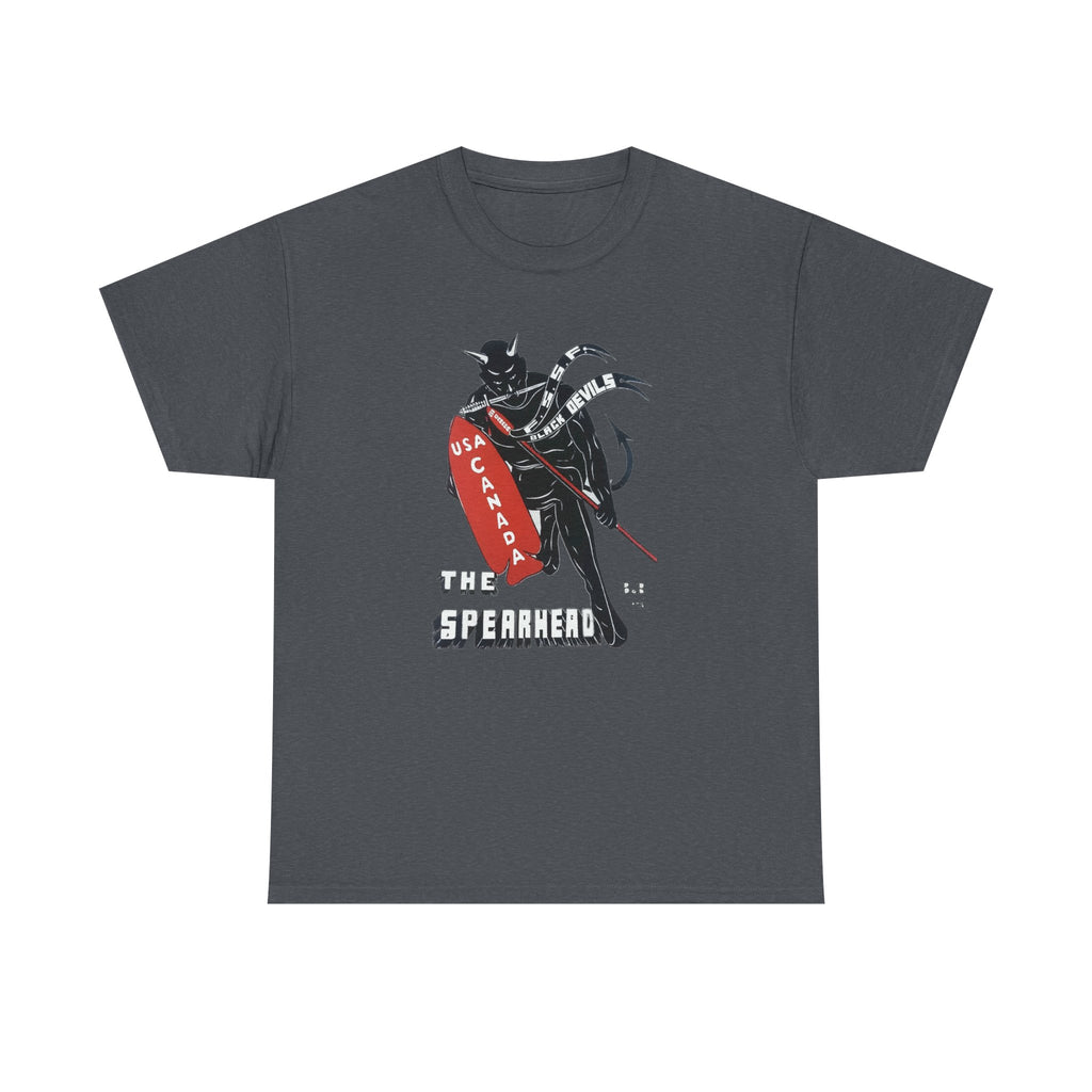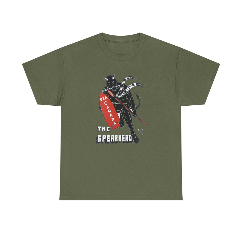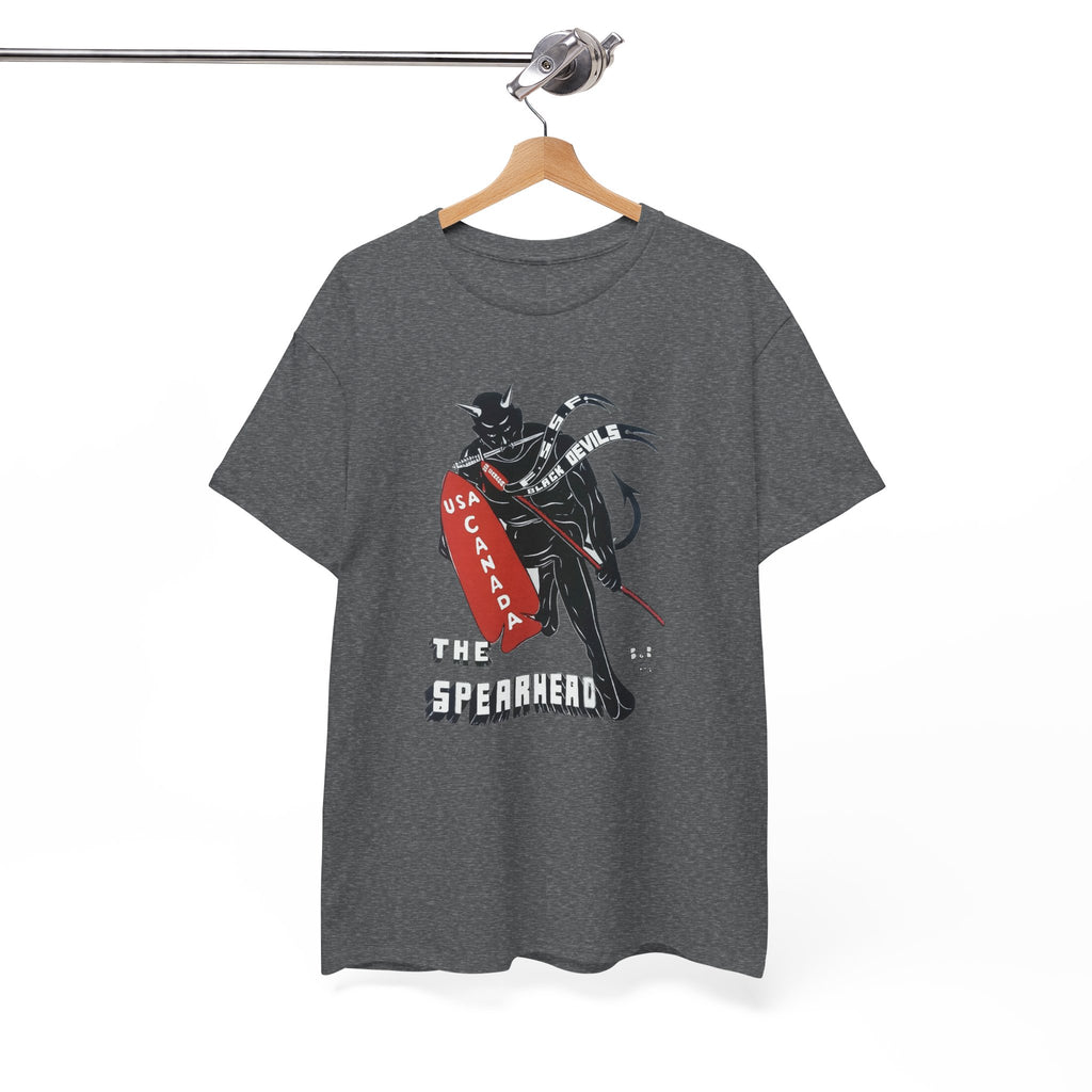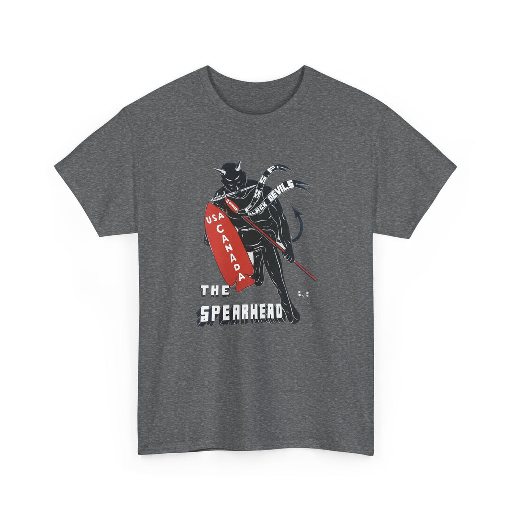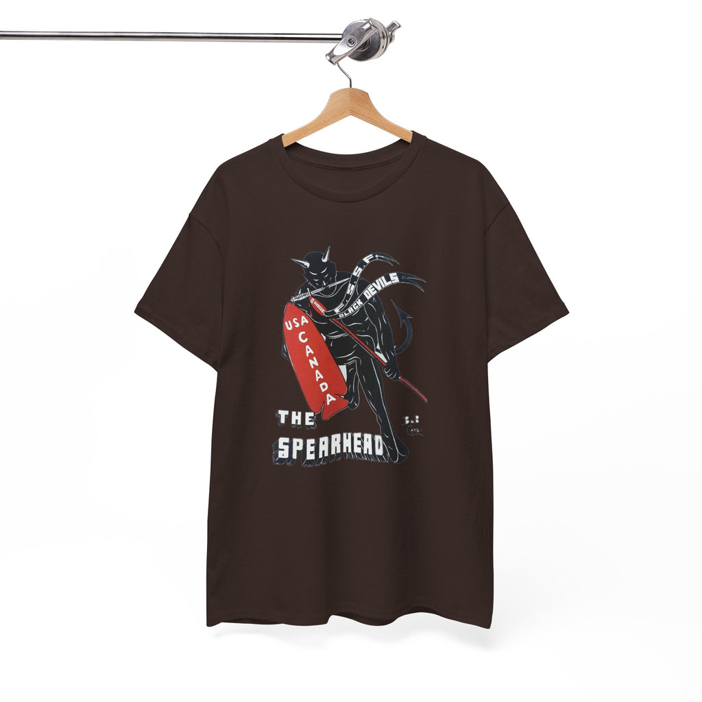 This shirt features “The Spearhead” design — the original insignia of the First Special Service Force, a joint Canadian–American commando unit that earned its place in history through courage, grit, and precision. Known to the enemy as “The Devil’s Brigade,” these soldiers led some of the toughest assaults of the Italian and European campaigns during the Second World War.