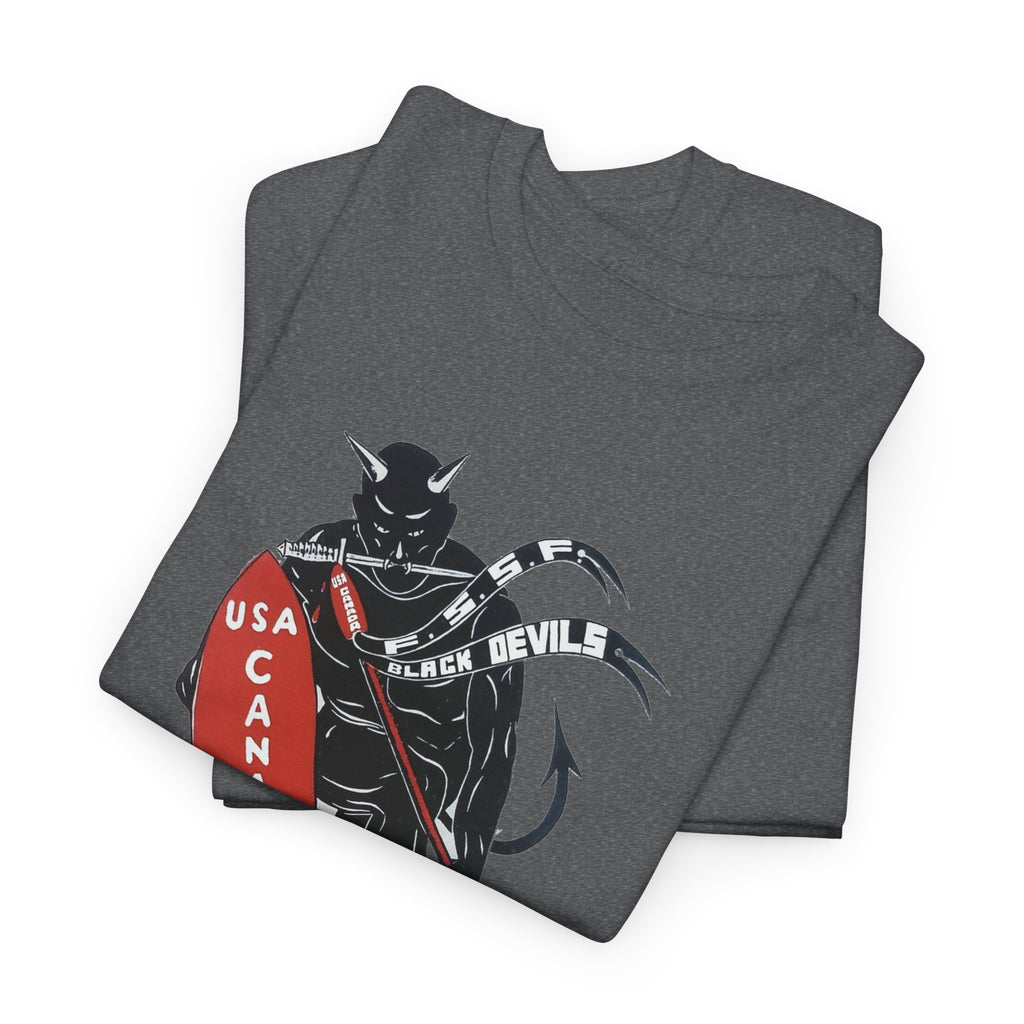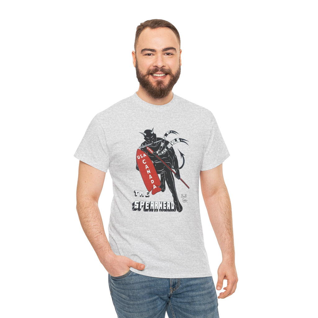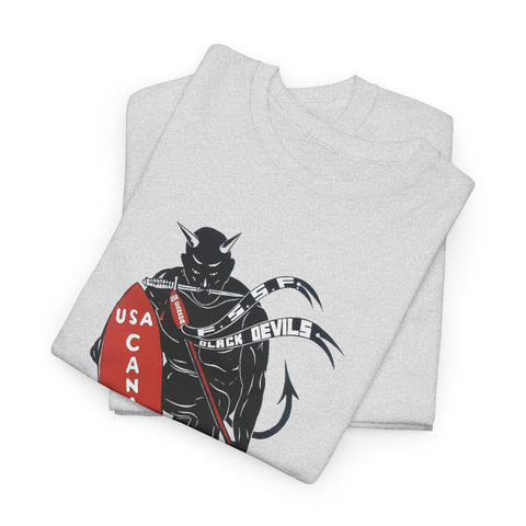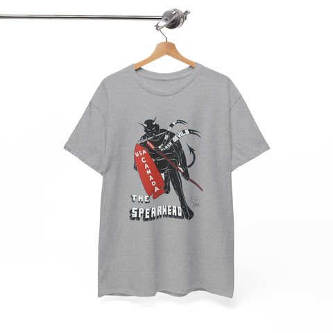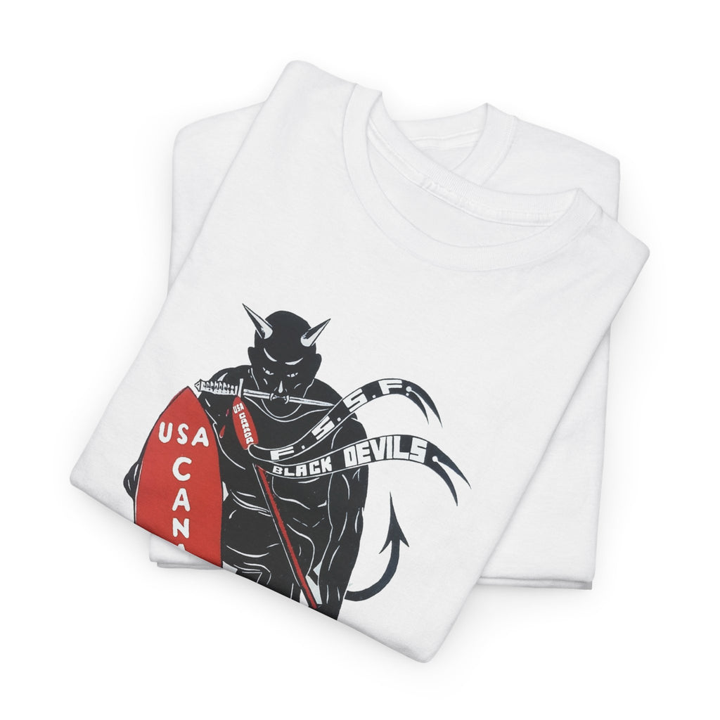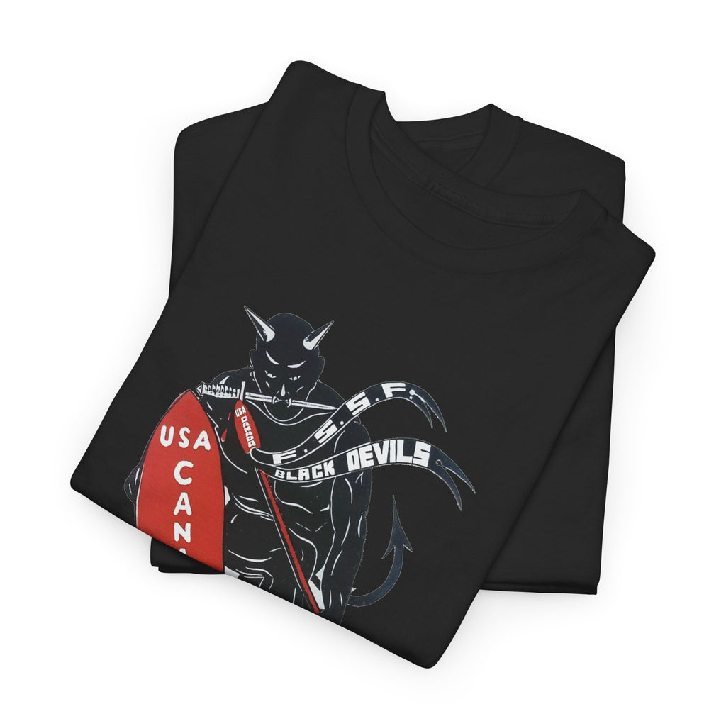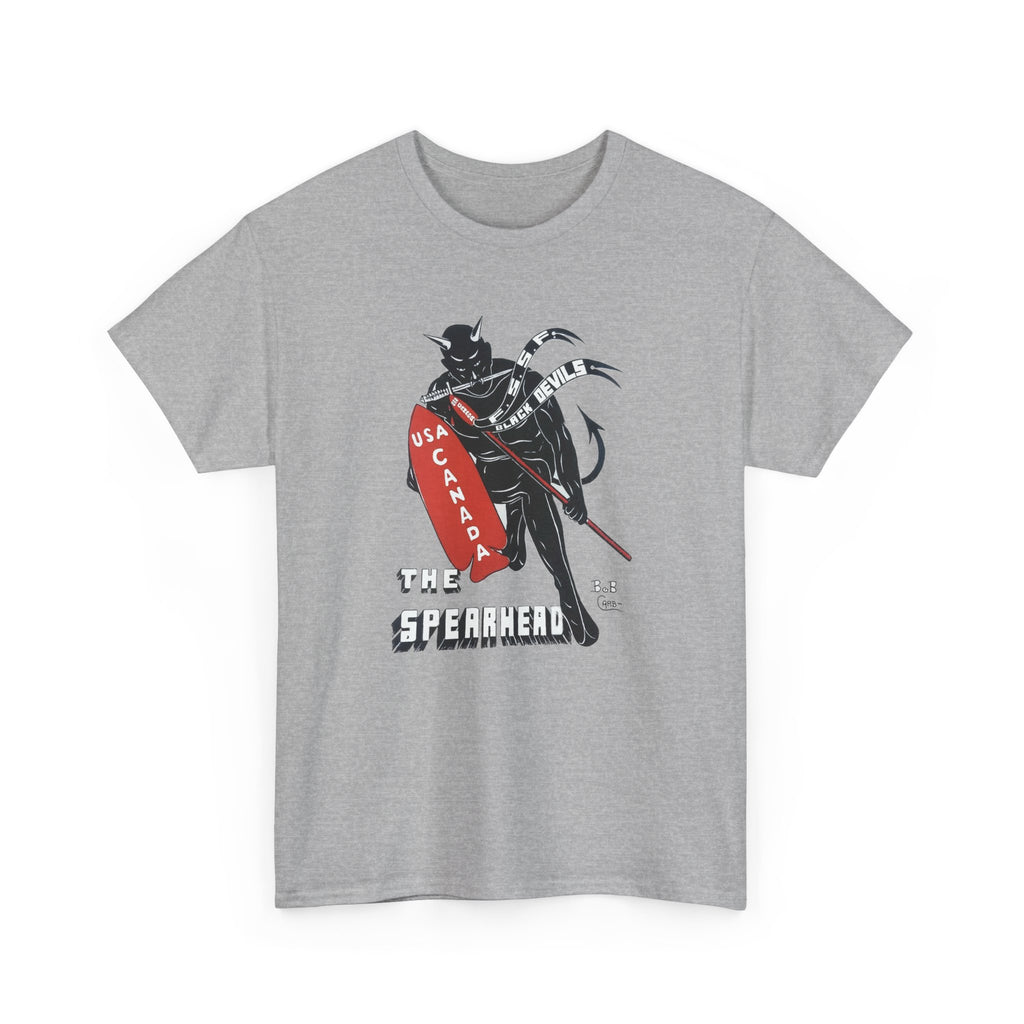 This shirt features “The Spearhead” design — the original insignia of the First Special Service Force, a joint Canadian–American commando unit that earned its place in history through courage, grit, and precision. Known to the enemy as “The Devil’s Brigade,” these soldiers led some of the toughest assaults of the Italian and European campaigns during the Second World War.