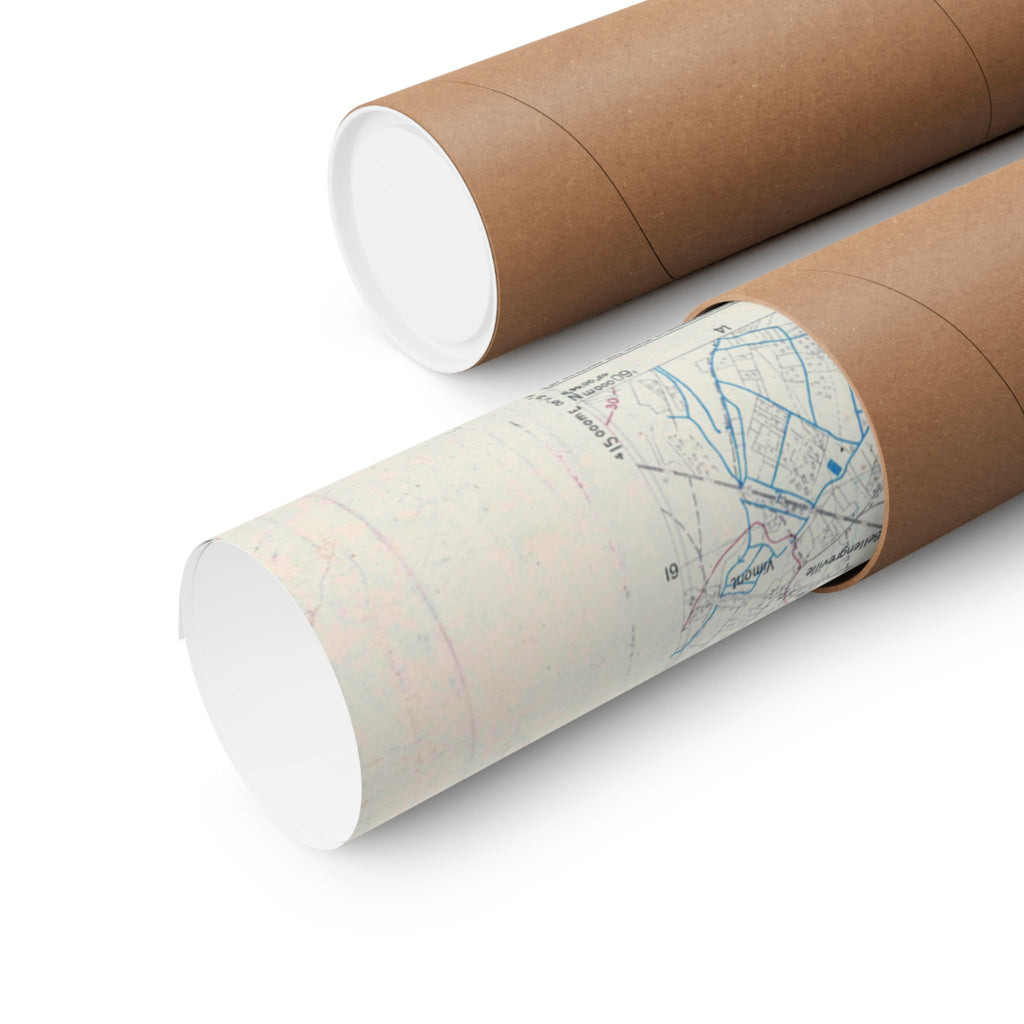 Centred on Caen and extending south toward Ifs, Hubert-Folie, and Bourguébus, the map highlights the complex web of approach roads and key river crossings that would later prove decisive during operations in Normandy. Bridges such as Reynold, Winston, and Churchill are clearly marked with their respective load classifications, while coloured route markings identify traffic control measures and vehicle restrictions. The careful grading of roads by tonnage illustrates the logistical realities faced by Allied planners and engineers as they prepared for large-scale manoeuvre across contested terrain.