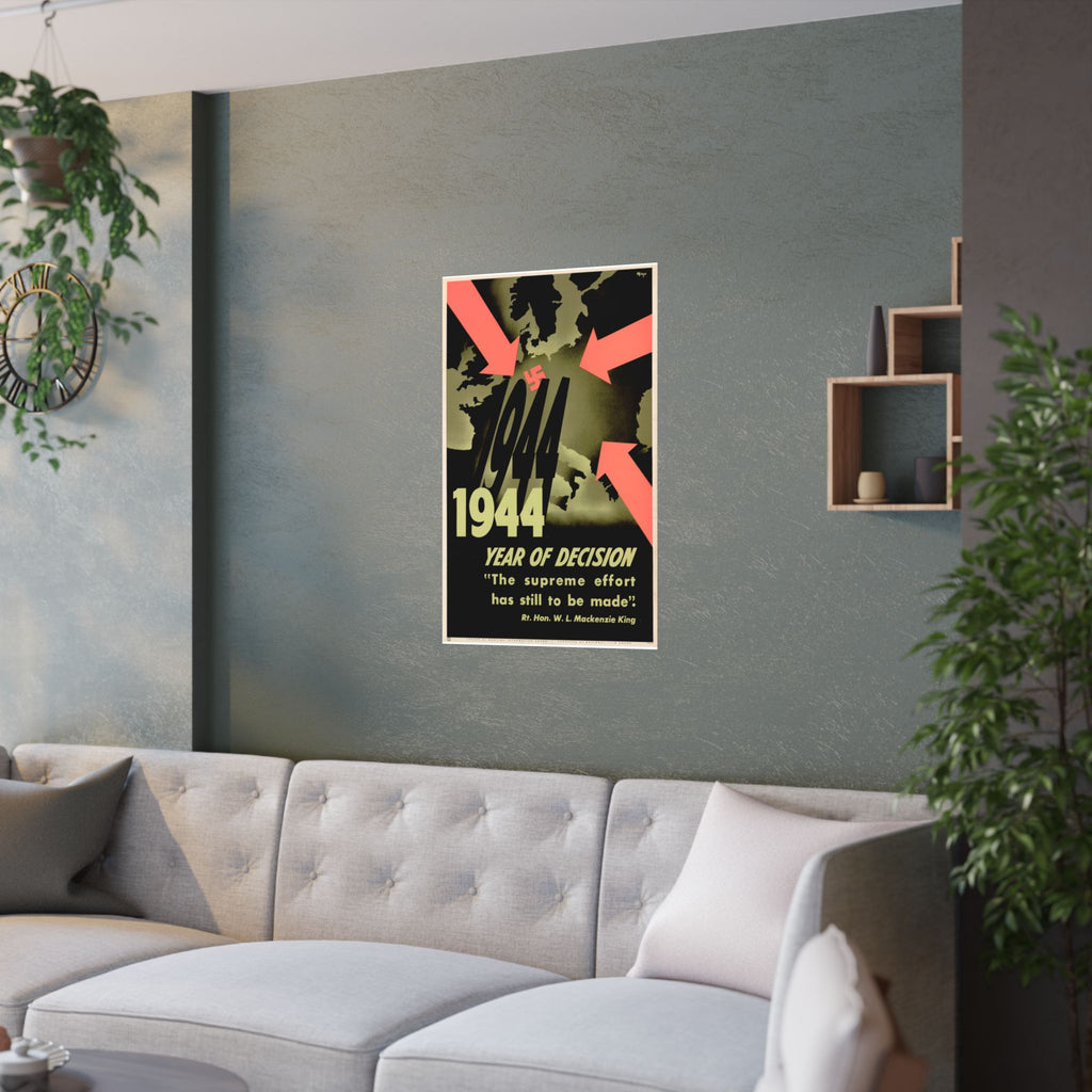 Bold, symbolic, and evocative — a rare wartime poster capturing Canada’s call for endurance in the decisive year of 1944.