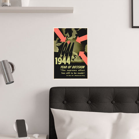 Created in the pivotal year of 1944, this striking Canadian war poster called on citizens to give their utmost as the Allies prepared for the final push toward victory in Europe. Featuring bold red arrows converging on a swastika over occupied Europe, it symbolized the united effort to defeat Nazi Germany once and for all.